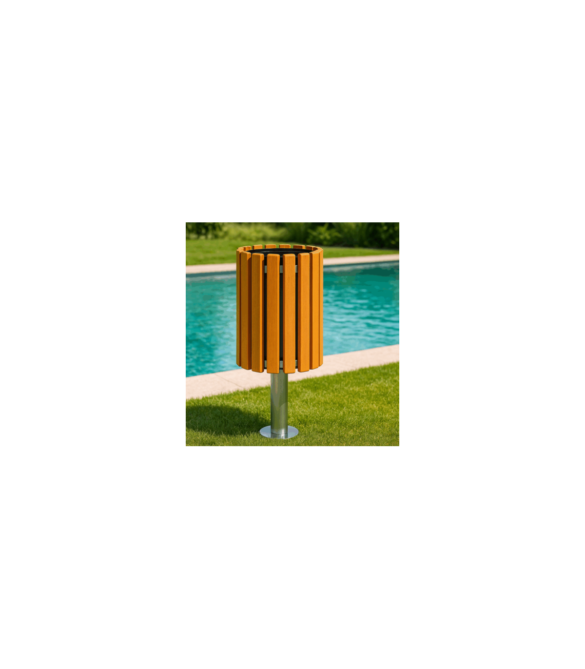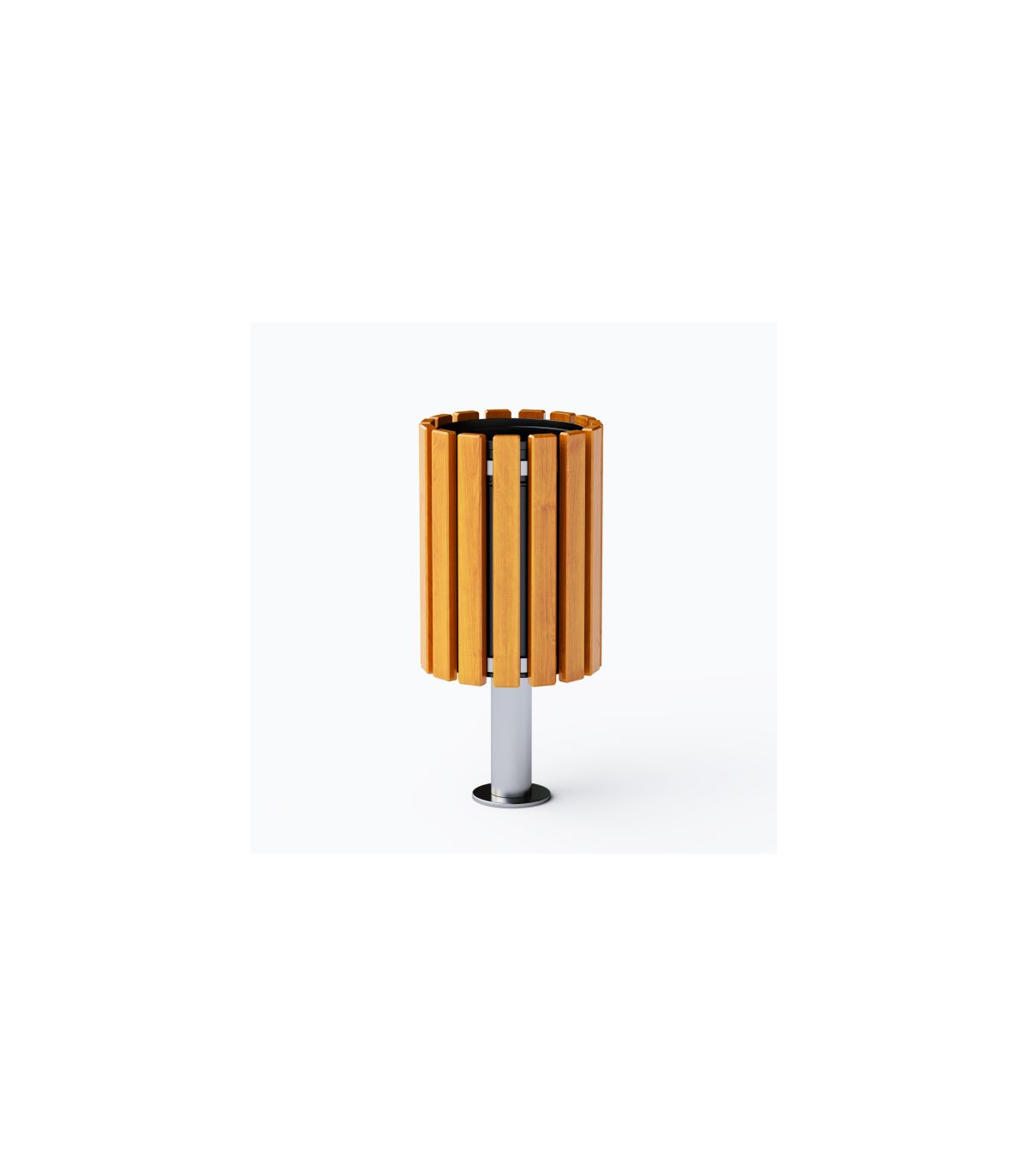 Papelera de Acero inoxidable y madera tratada.Incorpora cubeta interior en acero galvanizado
